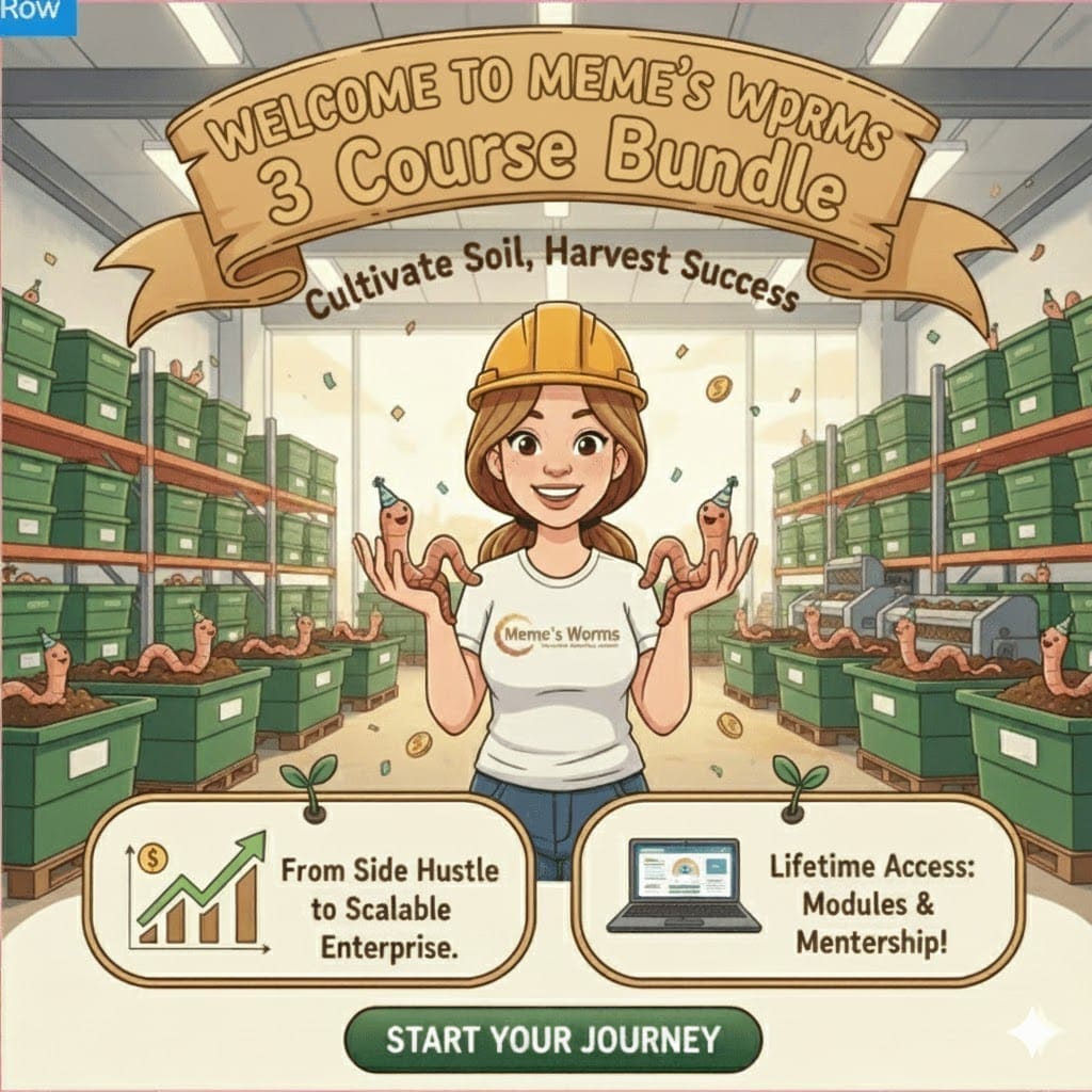 Start your journey with Meme’s Worms Beginner’s Course, where you’ll learn the simple, rewarding art of worm farming right from home. 🌱 Move up to the Hobbyist Course to refine your techniques, scale your setup, and start sharing your castings with others. Finally, master the business side with the Commercial Course, turning your passion into a profitable, sustainable enterprise that makes a real environmental impact.
